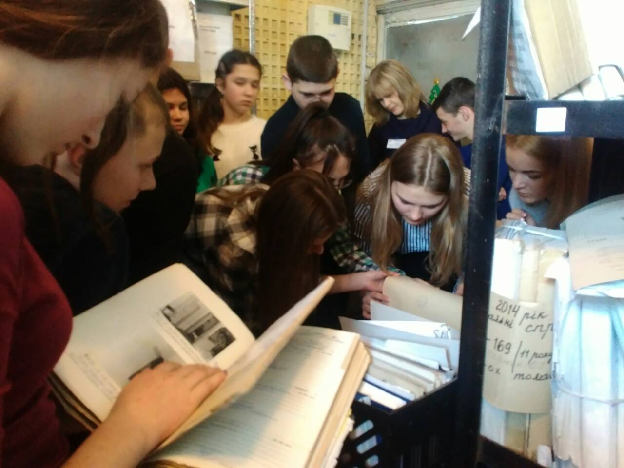 По тому учні мали змогу потрапити до архіву суду, в якому зберігаються справи минулих років. Керівник апарату Самофал О.В. ознайомила гостей зі специфікою роботи в архіві, повідомила, хто і як може замовити копію рішення, який порядок надання інформації, як відбувається знищення справ, строк зберігання яких закінчився та показала найстаріші рішення суду.