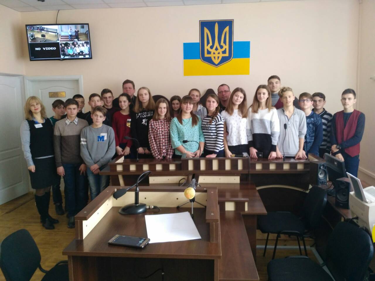 Після екскурсії по суду школярі повернулись до зали судового засідання, де з учасниками заходу провів бесіду голова суду Шелюховський М.В., який одразу ж запросив до себе у крісло судді старосту класу. Він розповів про роботу судді, категорії справ, які розглядаються в місцевих судах, про загородження, яке відокремлює обвинувачених (підсудних), засуджених від складу суду та присутніх, що відповідає європейським стандартам, про розгляд справ у режимі відеоконференцзвязку за участі присяжних та ін. Дав відповіді на запитання дітей та вчителя.