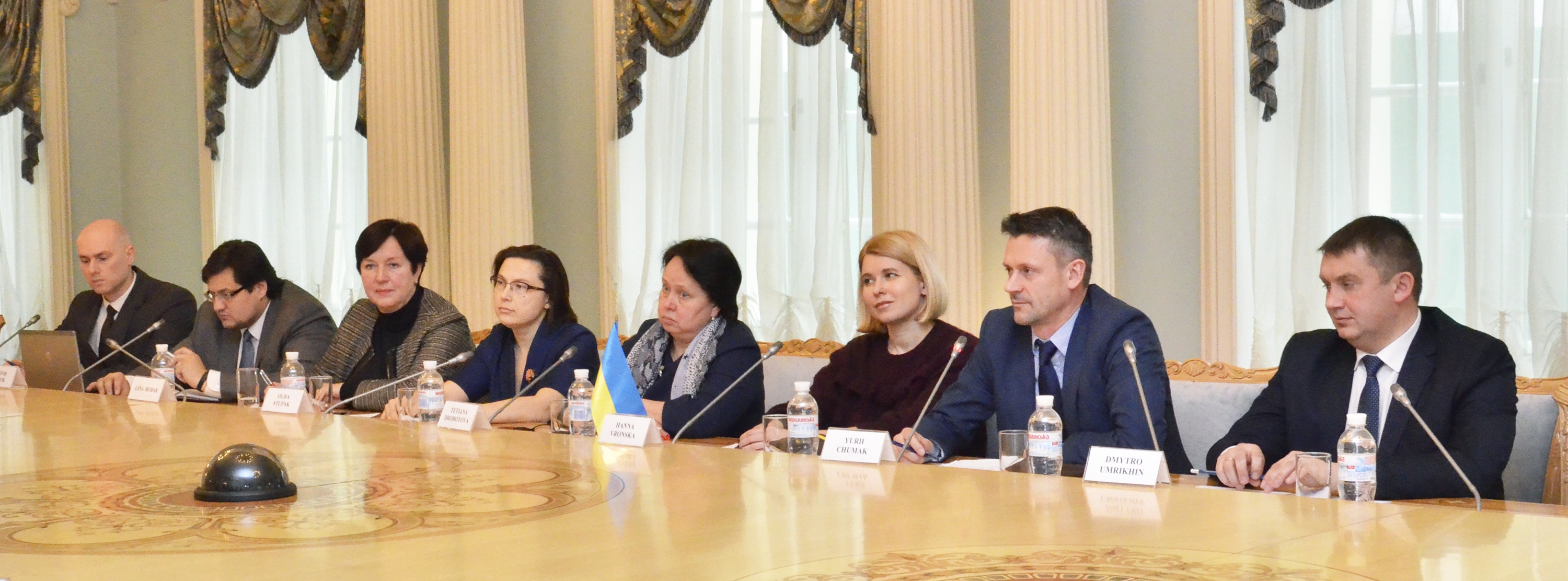 Делегацію представляли міжнародні експерти, які залучалися до надання експертизи в контексті реформи процесуального законодавства в Україні, зокрема: адвокат, колишній суддя, колишній експерт-резидент Спільної програми ЄС / Ради Європи щодо зміцнення судової влади в Україні та Туреччині Берт Маан (Нідерланди); адвокат, викладач Паризького Університету Жан Лагадек (Франція); професор права Маастрихтського Університету Ремко Ван Рі (Нідерланди); директор Національної судової адміністрації (Литва), експерт проекту Реда Молієне (Литва); національний експерт Проекту «Підтримка реформ з верховенства права в Україні (ПРАВО)» Оксана Матіяш.