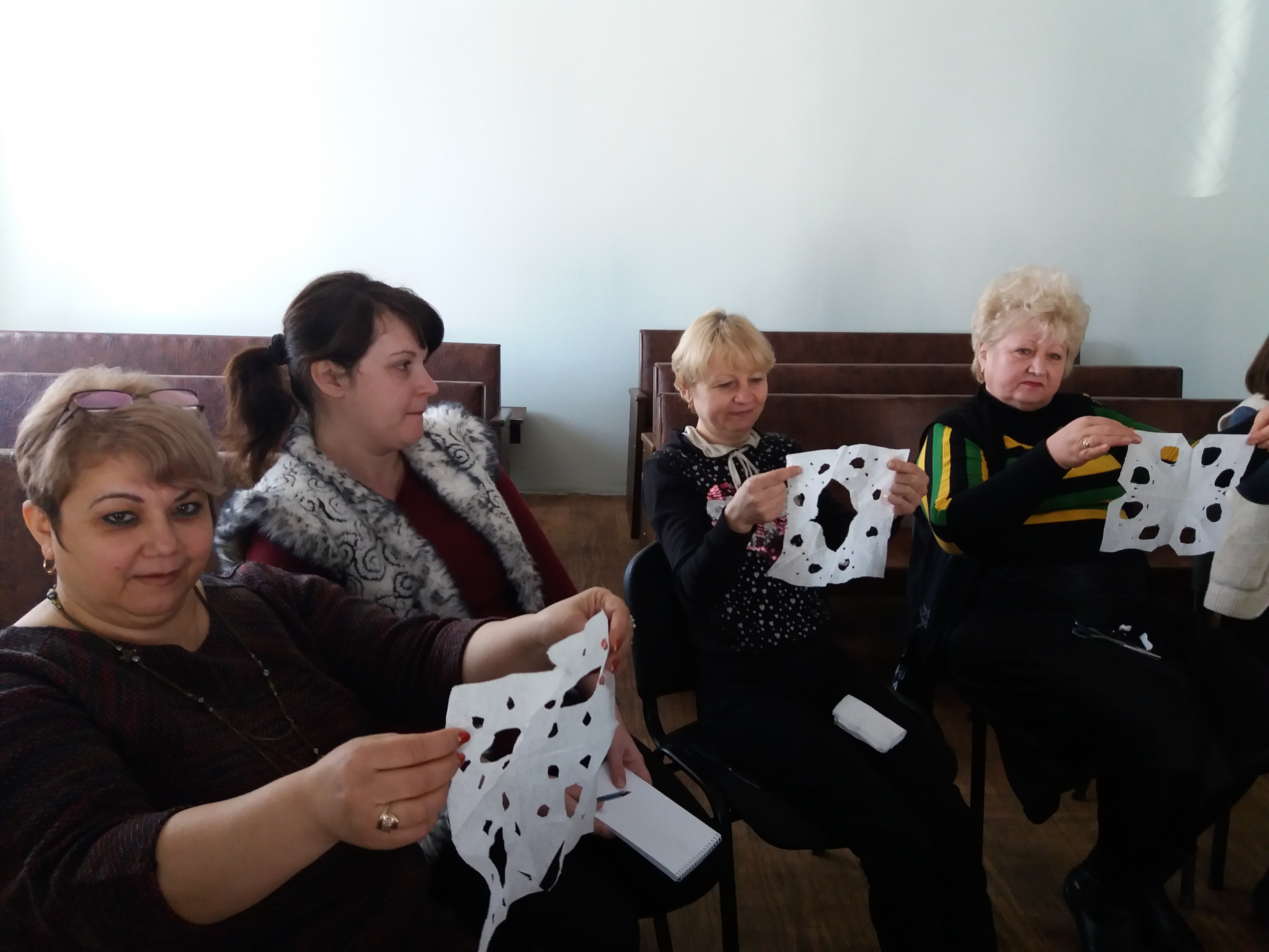 У ході тренінгового заняття виконувалися практичні завдання: вправа-колаж "Дерево", вправа "Квадрат", вправа "Серветка", вправа "Тарілка з водою" та інші завдання.