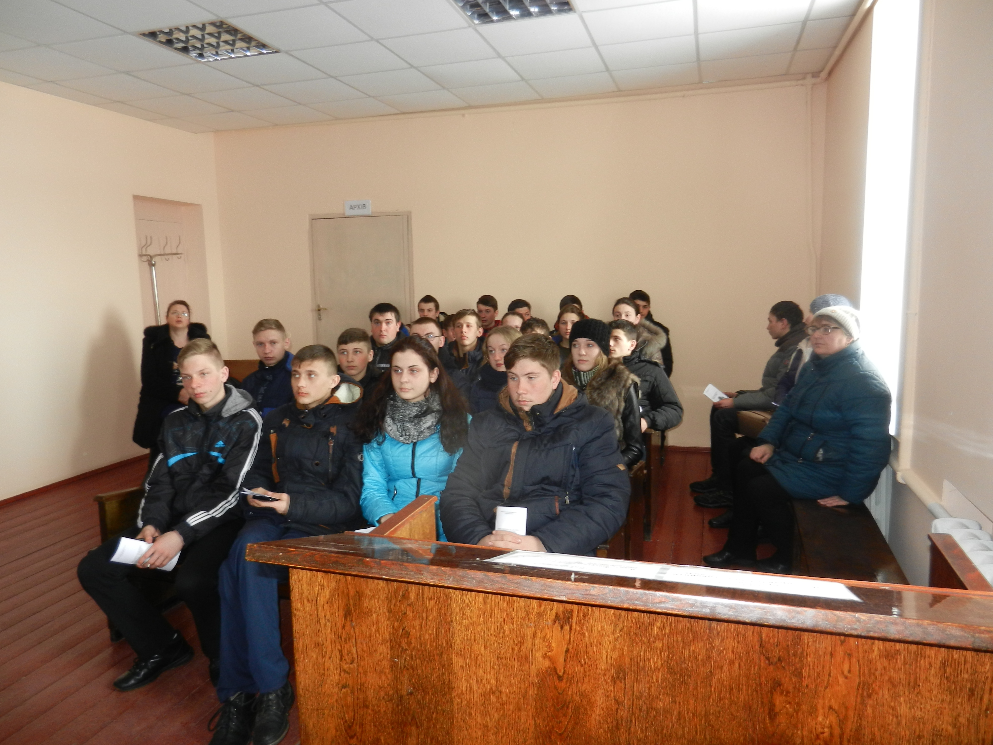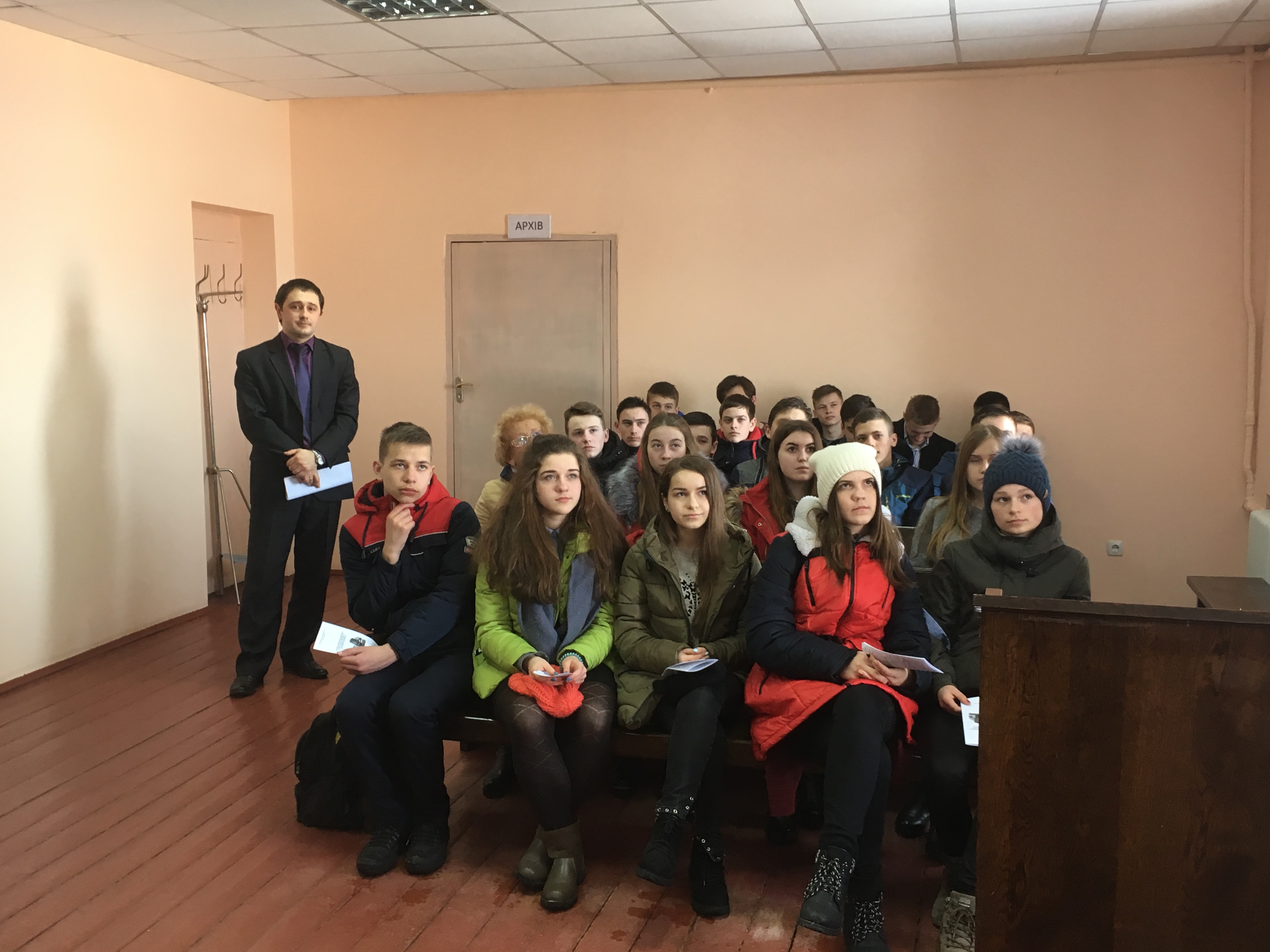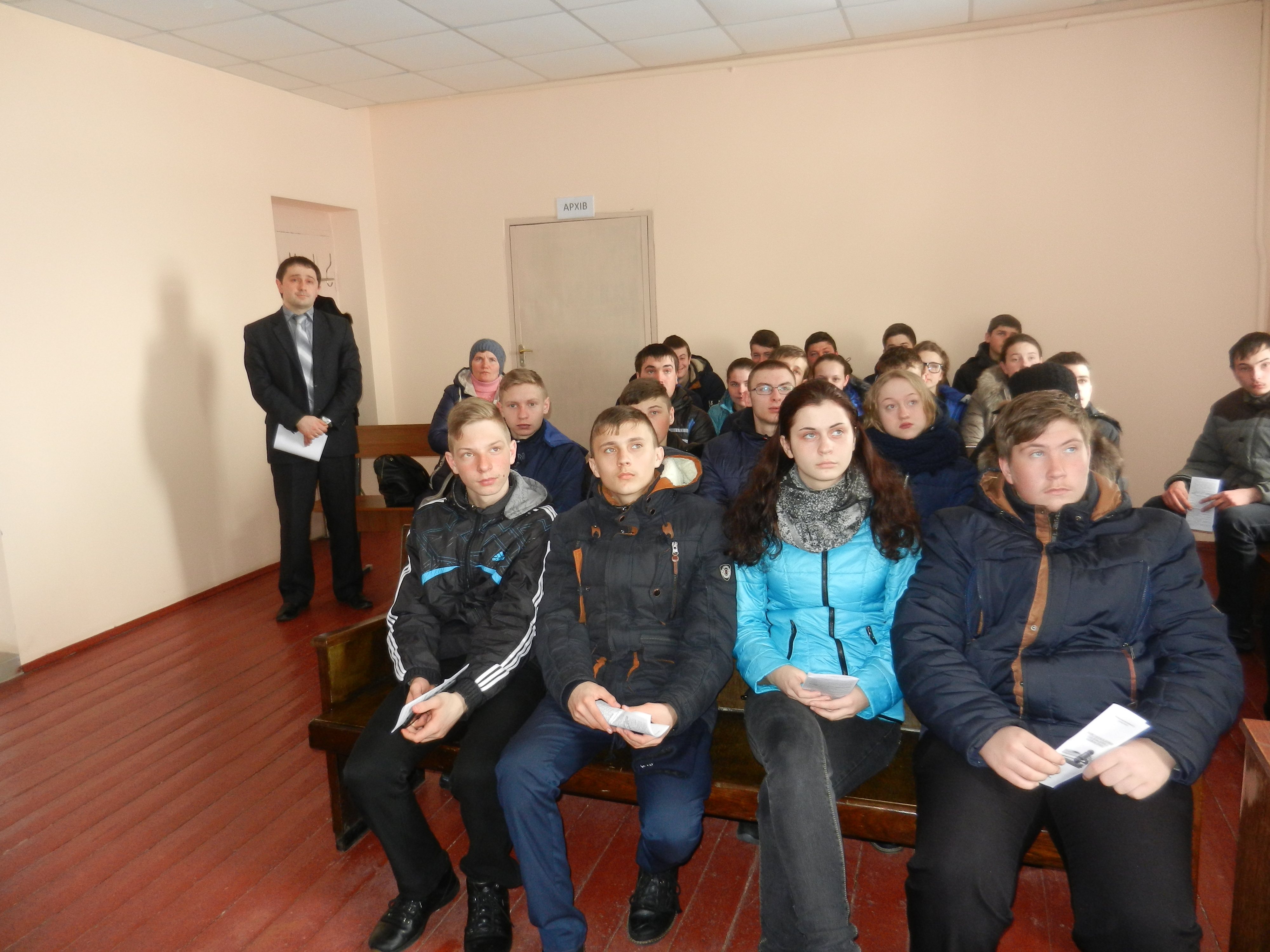 Захід проводився по попередньо розробленому плану, який викликав неабияку цікавість в учнів. Спочатку суддя-спікер Бутенко Д.В. виступив із лекцією щодо умов і порядку судового захисту прав підлітків, останнім доведено до відома загальні правила поведінки в суді, умови та порядок допиту в суді неповнолітніх свідків, роз’яснено як надаються пояснення і показання неповнолітніми особами під час судових засідань, які процесуальні гарантії передбачені у процесуальному законодавстві для забезпечення права на захист у кримінальних провадженнях та у справах про адміністративні правопорушення.