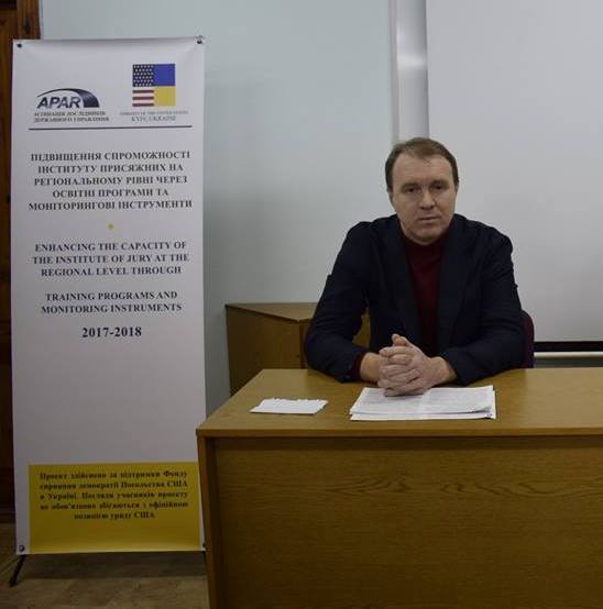 Учасників тренінгу ознайомлено з законодавчою та нормативно-правовою базою , що регулює діяльність судів присяжних в Україні. Також, було повідомлено про роботу в межах проекту «Підвищення спроможності інституту присяжних на регіональному рівні через освітні програми та моніторингові інструменти», які реалізується Асоціацією дослідників державного управління за підтримки Фонду сприяння демократії Посольства США в Україні. Проект спрямований на розвиток інституту присяжних в південному регіоні України через розробку методичного забезпечення їхньої діяльності, навчання присяжних, збільшення довіри до інституту присяжних серед громадськості та учасників судового процесу, а також створення системи моніторингу діяльності судів присяжних тощо.