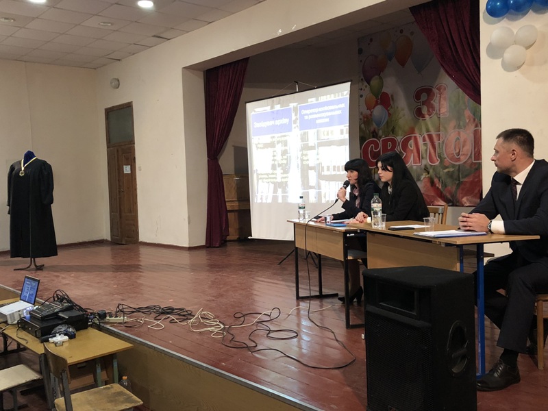 Під час інформаційно-виховної години суддя-спікер Мірошниченко О.В. сформував у учнів уявлення про організацію судової влади, здійснення правосуддя, завдання суду.