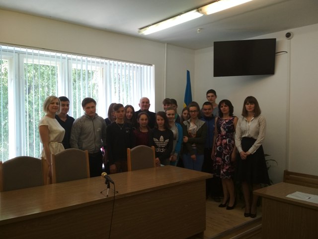 З вітальним словом до присутніх звернулась заступник керівник апарату суду Матушак С.М. та провела оглядову екскурсію приміщенням суду. Заступник керівника апарату суду Матушак С.М. розповіла школярам про історію суду, ознайомила з символами правосуддя , правилами поведінки в приміщенні суду та під час проведення судового засідання, розповіла які справи розглядає місцевий суд.