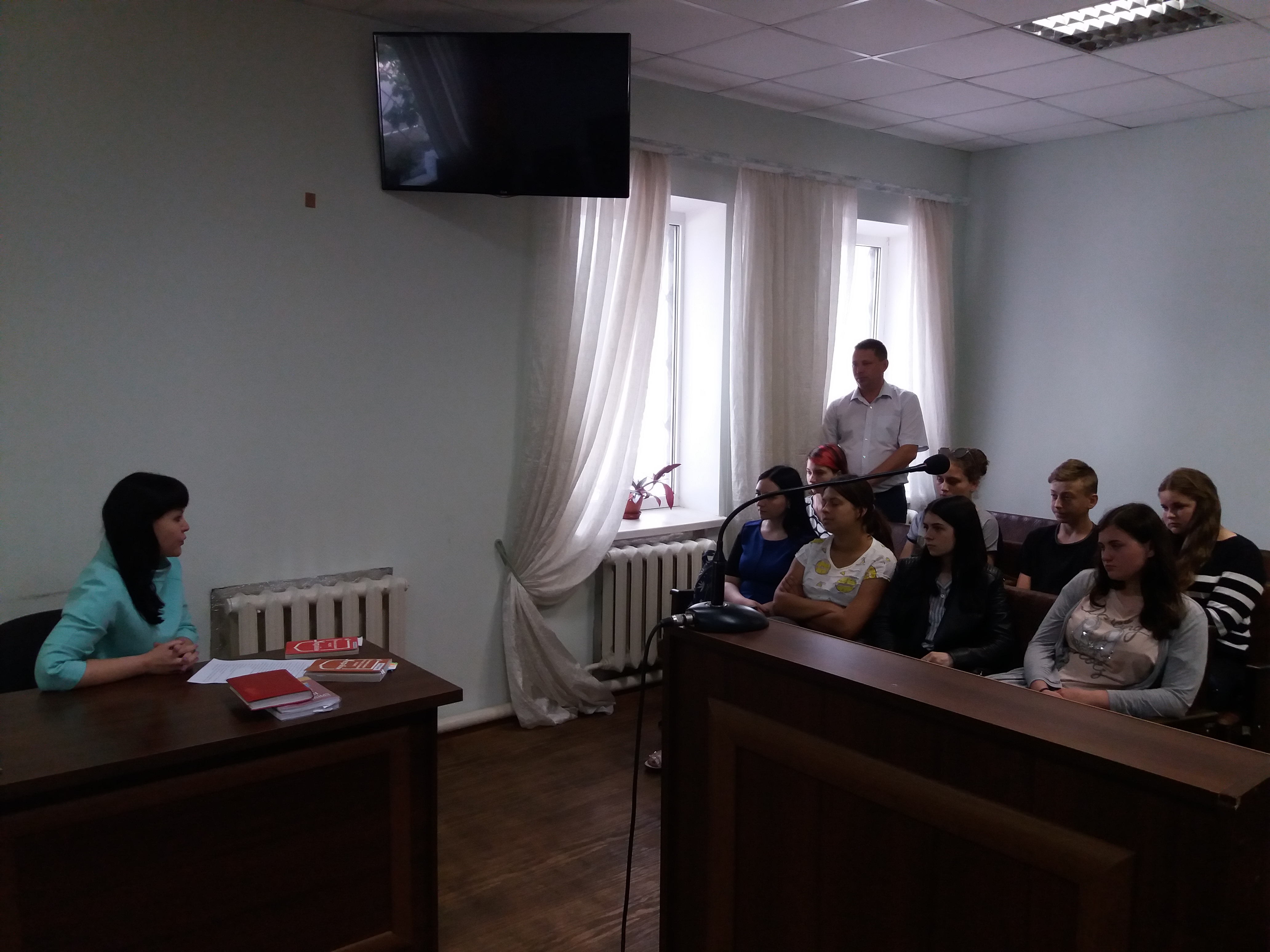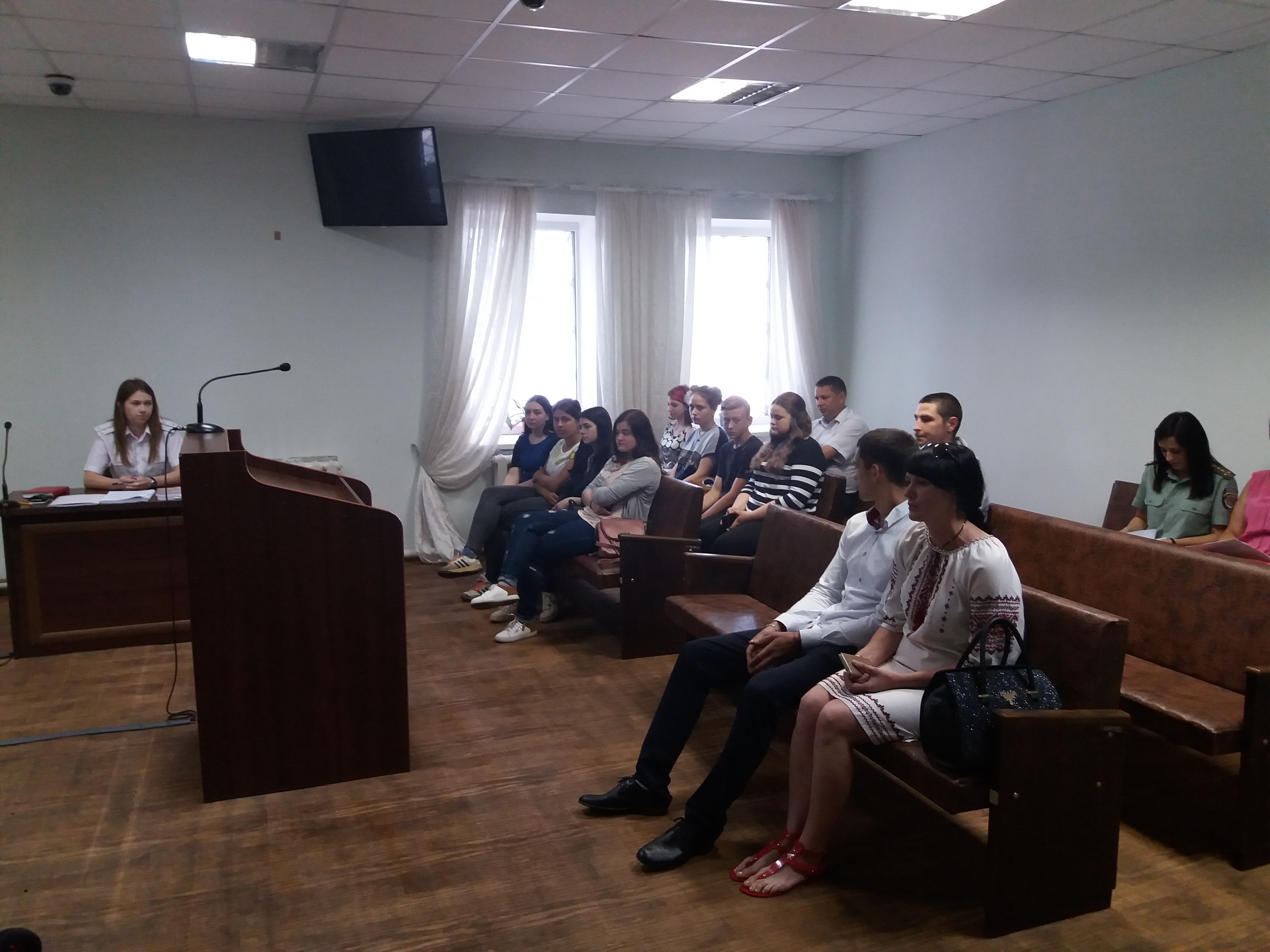 Після пізнавальної розповіді голова суду Пустовар О.С. запросила учнів відвідати судове засідання по кримінальному провадженню відносно неповнолітньої особи.