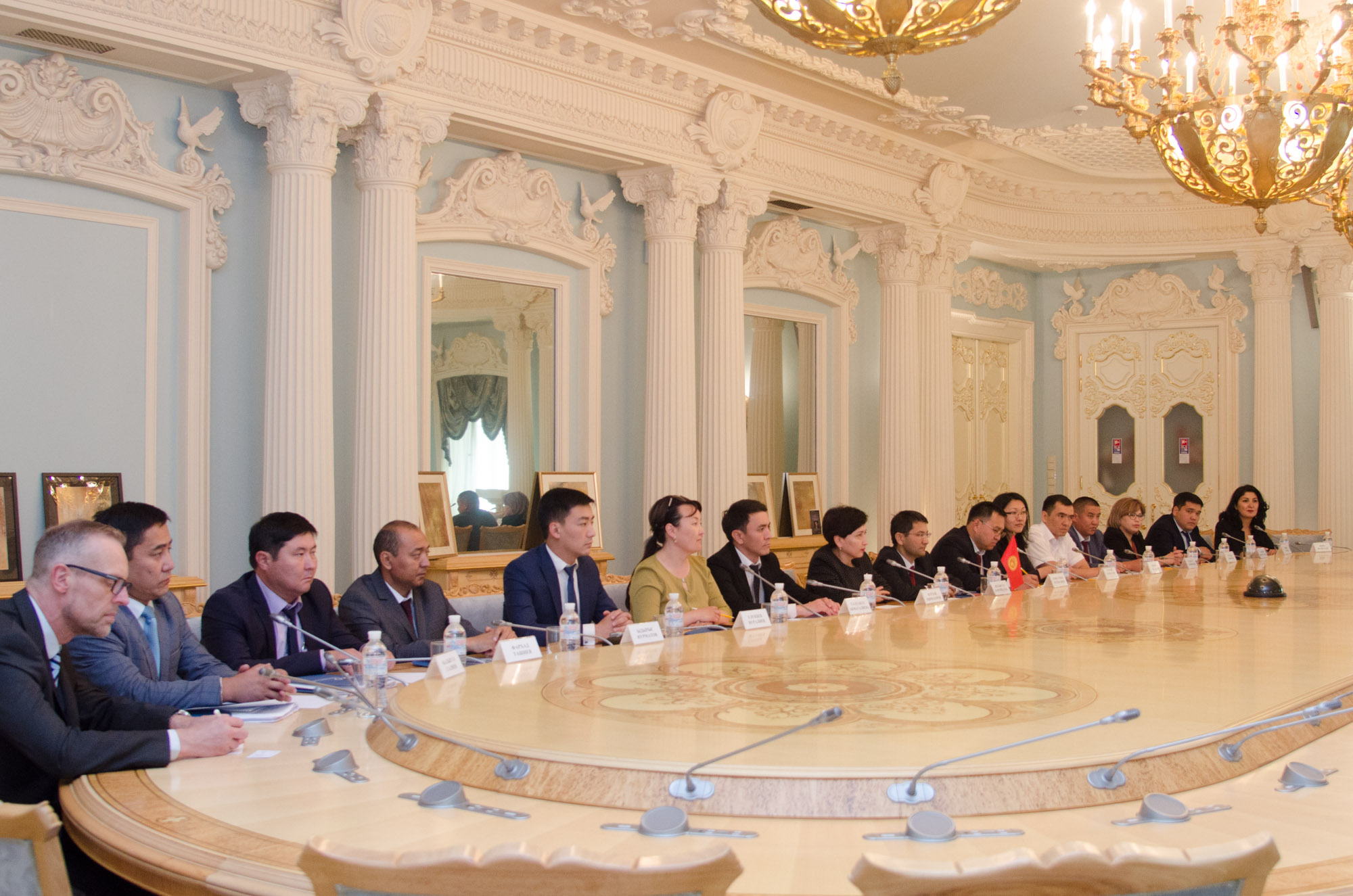 До складу делегації увійшли представники Верховного суду Киргизької Республіки, Служби судових виконавців, Служби судових приставів, Європейського банку реконструкції і розвитку, а також радники з правових питань Міжнародної організації з права розвитку (IDLO) та Координатор програм IDLO. З української сторони участь у зустрічі взяли начальник відділу міжнародного протоколу Міністерства юстиції України Ярослав Новосьолов, заступник голови ДСА України Сергій Чернуцький, начальник відділу претензійно-позовної роботи ДСА України Сергій Сердиченко та керівник відділу міжнародно-правової взаємодії ВС Ліна Губар.