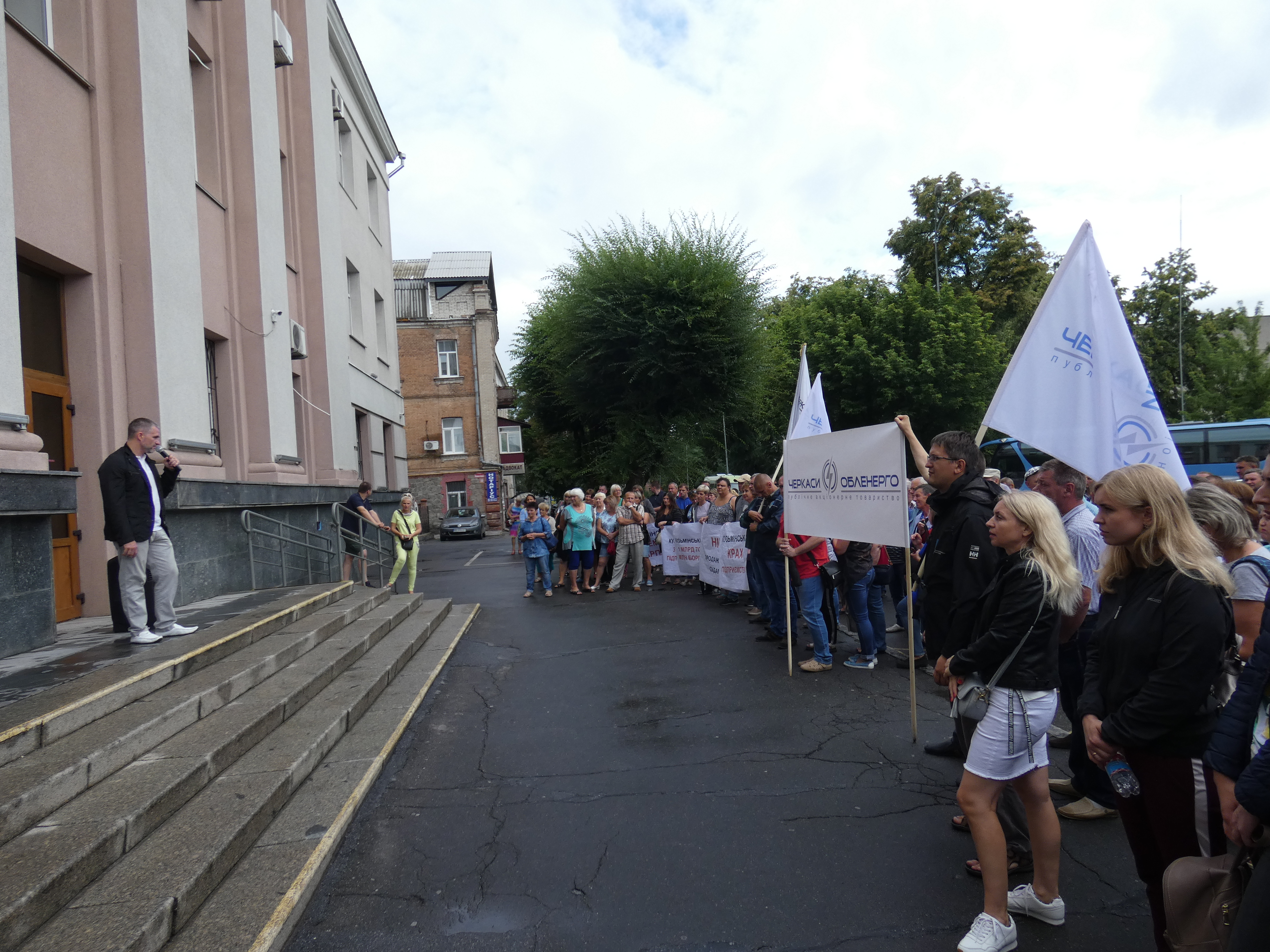 Дві сотні працівників ПАТ «Черкасиобленерго» мітингували сьогодні, 11 липня, біля Апеляційного суду Вінницької області. Вони вимагали не поновлювати на посаді виконуючої обов’язки голови правління підприємства попередню керівницю. Своїми проблемами ділилися і з очільником суду Петром Кучевським.