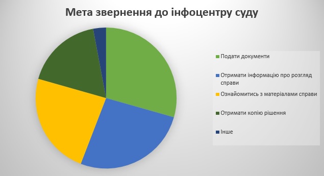 Отже, відвідувачі суду активно звертаються до інфоцентру та користуються відповідними послугами.