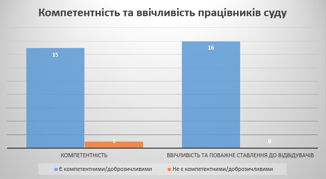 За різними показниками роботи працівників суду та судової установи загалом відвідувачі надали такі відповіді.